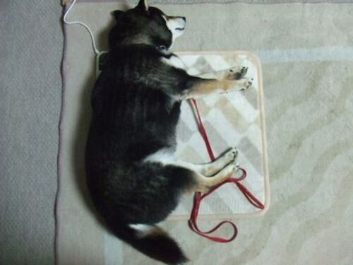 足元用ホットカーペットを引っ張りだしてきてスイッチをONすると、ぱれんがちゃっかりと占有しました。
